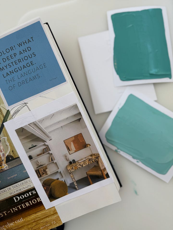 These small images I collect often end up collaged in a new collection. A color story, a mood or a theme I want to study more deeply. Maybe for writing, or color studies, or an actual painting. The point isn’t that I’ve collected them, it’s in their randomness and the connections I might see later as I arrange them. Creativity needs to be fed, often, and these little moments are like snacks for my creative heart. Reminders of the beauty that exists in the natural and man-made world. Those geometric tiles, the furniture in that cluttered antique shop, the flower arrangement - they’re all breadcrumbs, really. Little markers of moments and feelings I want to tap into later, revisiting them with fresh eyes to build something new.