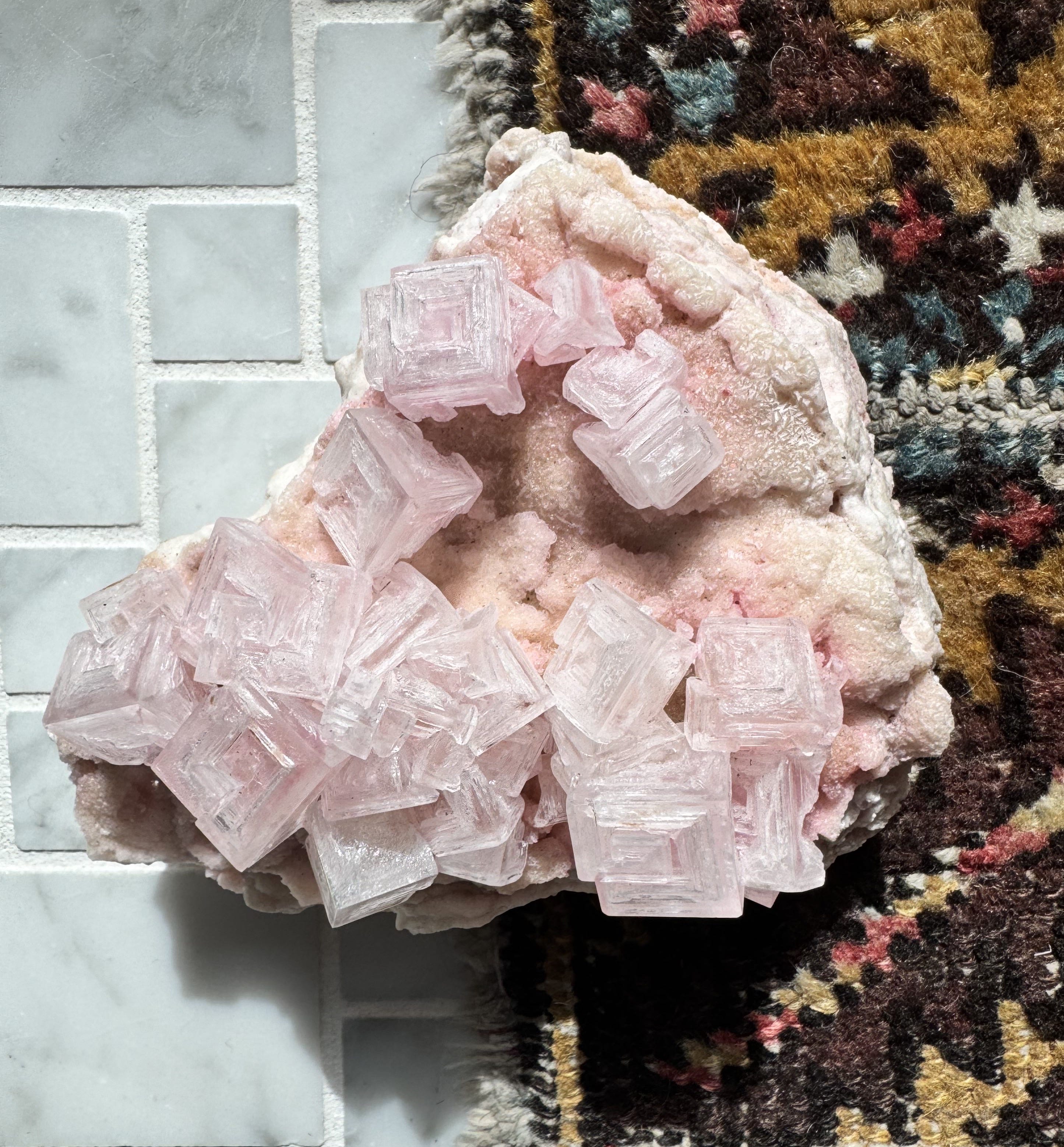 My mom went to the Tucson gem show and brought me back the most magical piece of pink calcite. I’ve been living with it on my studio shelf for the past week, just looking at it. The pink is chalky, not soft exactly, more like matte silk, the kind of color that seems lit from inside rather than from any external source. That luminosity is the problem I’m trying to solve. How do you mix a color that appears to generate its own light? Pigment doesn’t do that. And yet somehow you have to suggest that it does. I don’t have the answer yet. I’m still in the looking stage, which is usually where the most interesting work begins.